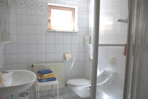 Spiegelschrank zur Verfügung, dazu Dusche und WC.