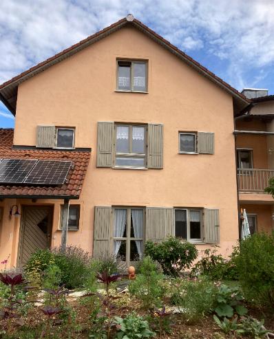 Die Ferienwohnung ist ein eigenständiger Bau, komplett mit eigenem Eingang, Terrasse, Balkon, Garage, Stellplatz und Einfahrt. |